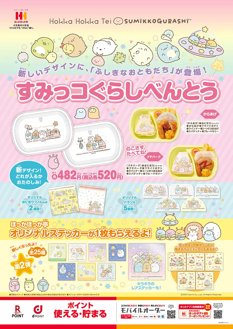 「すみっコぐらし」とほっかほっか亭がコラボした「すみっコぐらしべんとう(からあげ・プチバーグ)」のデザインがリニューアル。