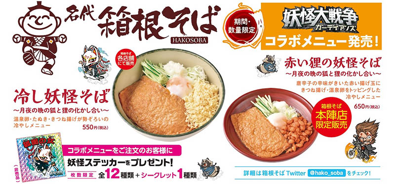 どうやら、この夏に立ち食いそばチェーンの「箱根そば」とコラボした時にももらえたシールのようで、箱根そばのキャンペーンだと箱根そばのキャラクターの「妖怪やっこ」という同様のシールがシークレットで当たったようです。