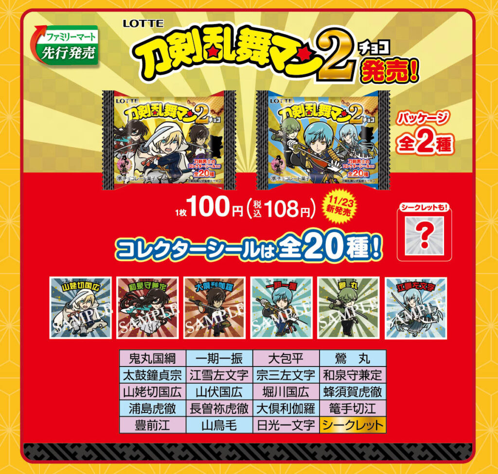 「刀剣乱舞-ONLINE-」とロッテのコラボ商品「刀剣乱舞マンチョコ2」が2021年11月23日(火)に発売。全国のファミリーマートにて数量限定。