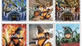 大阪土産の定番商品の株式会社 青木松風庵の「みるく饅頭 月化粧」とのコラボ商品は、展示会のポスタービジュアルを使ったパッケージ。1箱につき1枚オリジナルステッカーが封入されています。(全5種ランダム/サイズ:約 横58mm×縦58mm)