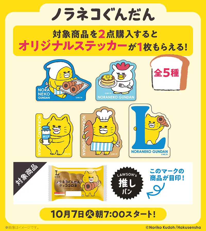 ローソンで「ノラネコぐんだん おいしいパンさがし」キャンペーンが、10月7日(火)から10月20日(月)まで展開。