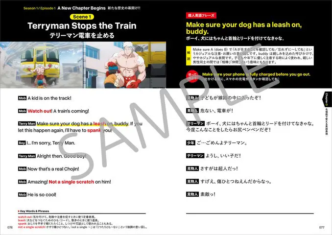 34の名場面を誌面で完全再現。セリフのやりとりを日本語と英語で対比掲載し、語注やフレーズ解説も充実。さらに解説で日常会話への応用方法も紹介し、楽しさと実用性を兼ね備えた学びが体験できます。