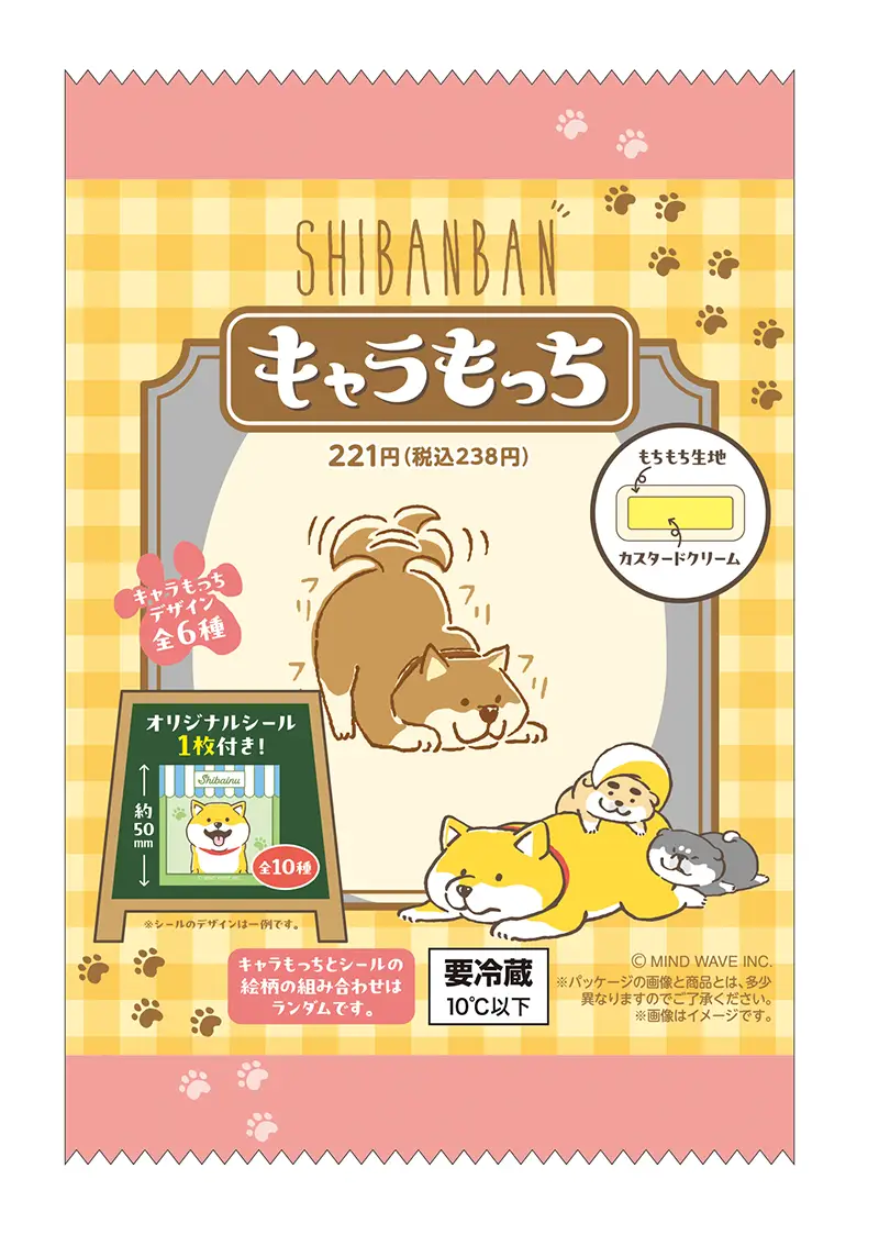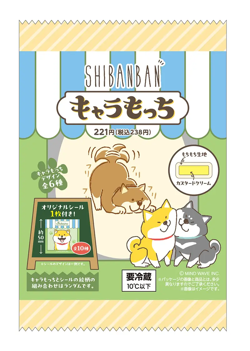 しばんばんのかわいいイラストが描かれたもちもちの生地にカスタードクリームを入れました。本体に描かれたイラストは全6種、オリジナルシール(全10種)1枚付きです。