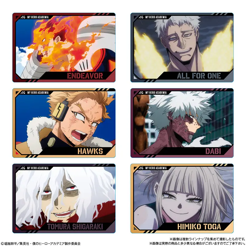 緑谷出久、爆豪勝己、轟焦凍、アーマード・オールマイト、エンデヴァー、ホークスの6種。