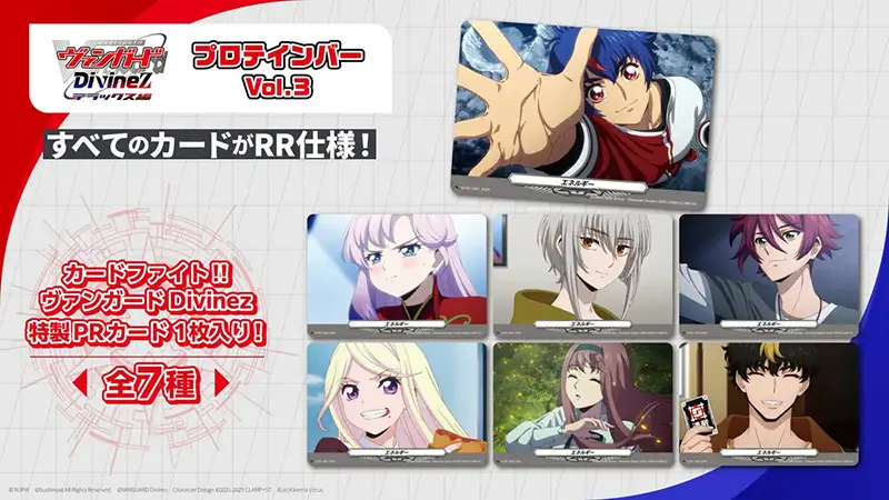 TVアニメ「カードファイト!! ヴァンガード Divinez」の場面写を使用した特製PRカード全7種から1枚入り!すべてのカードがRR仕様