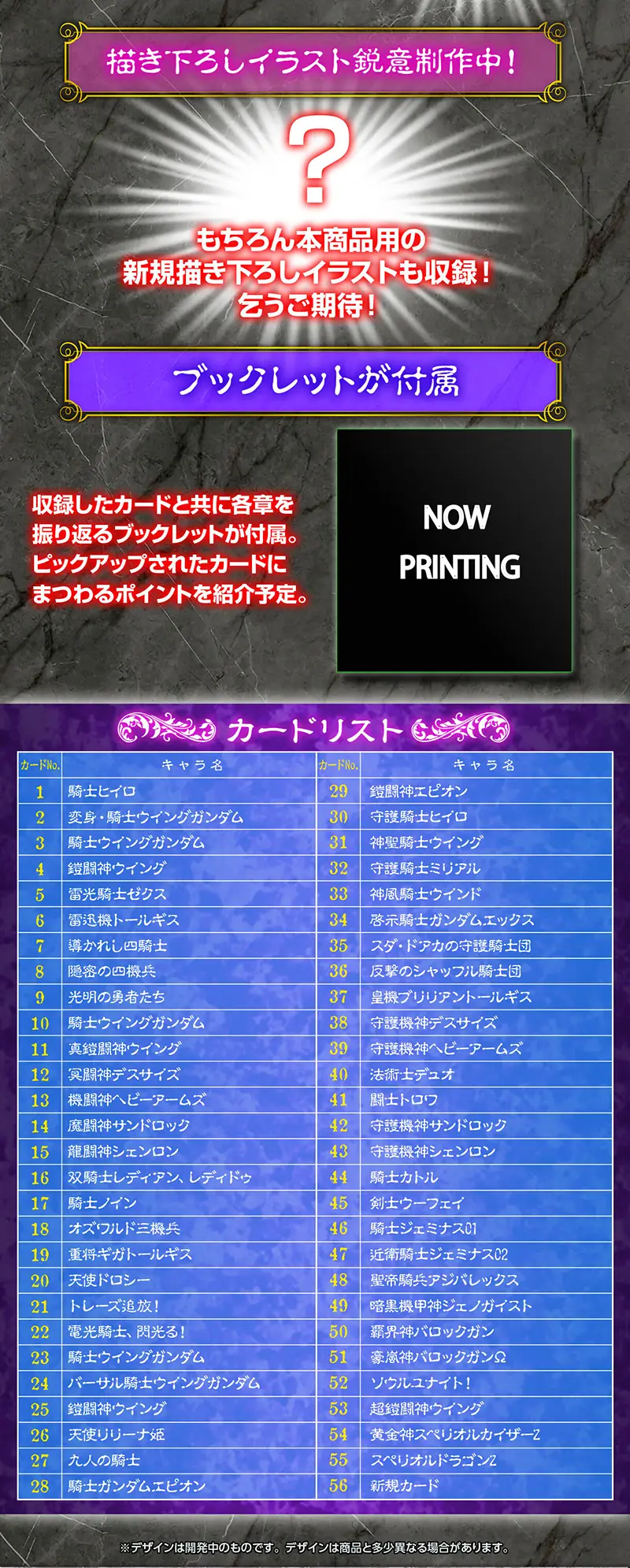 SDガンダム外伝の最後を飾る物語と多彩なキャラクターから、収録枚数を1.4倍の全56種に大増量!