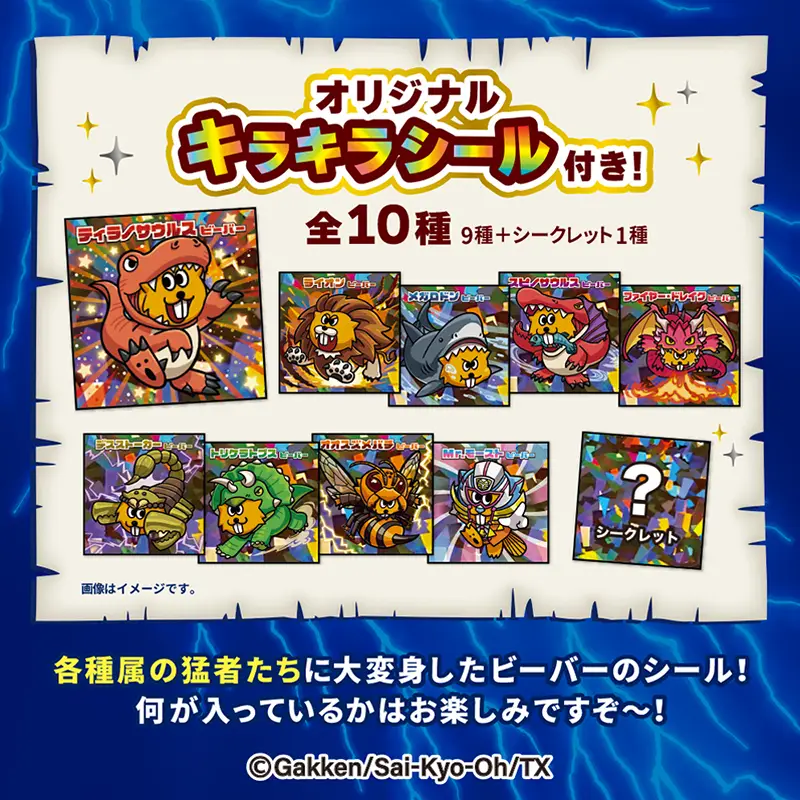 各種属の猛者たちに大変身したビーバーのオリジナルシールが付いています。