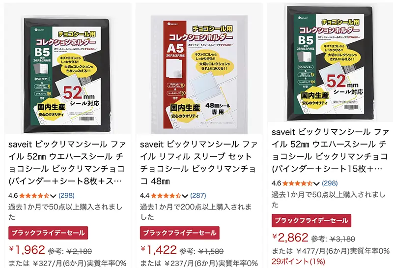 Amazonでブラックフライデーセール開催中。 チョコシール コレクションホルダーなどのおまけシール用コレクションサプライがセール価格で販売中です。概ね10%〜15%OFF。