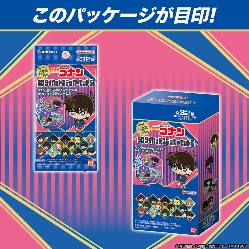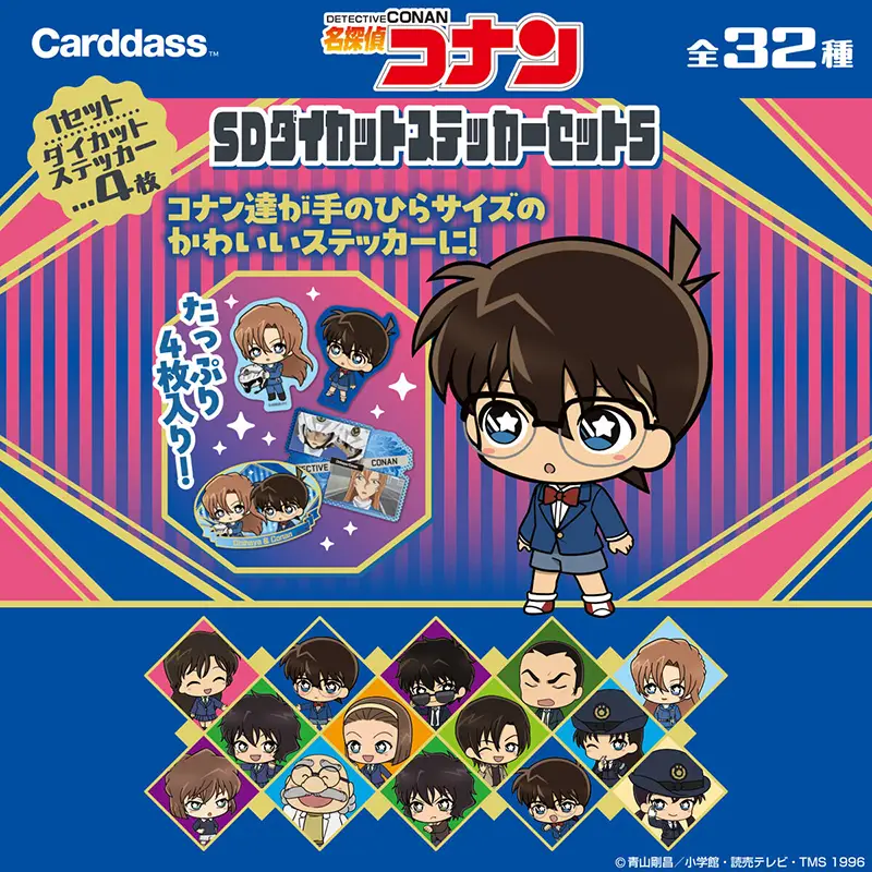 劇場版『名探偵コナン ハイウェイの堕天使』で活躍するキャラクター中心に、バンダイ新規描きおろしのSDイラストを全16キャラ収録!ステッカーは全32種、1pcに4種各1枚入です。