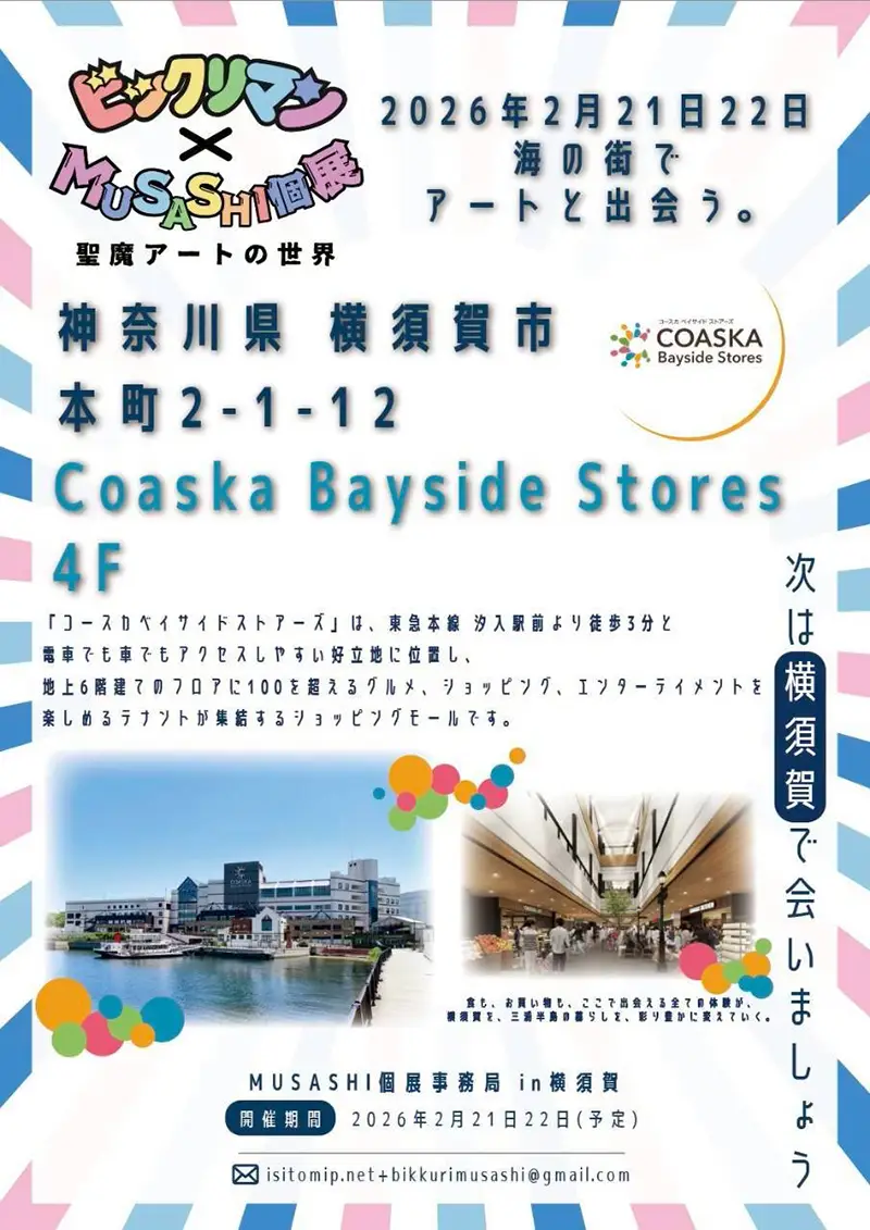 現代アーティストMUSASHI氏による 『ビックリマン×MUSASHI個展 聖魔アートの世界』の第5弾が2月21日(土)・22日(日)の2日間神奈川県横須賀市の「Coaska Bayside Stores」にて開催。