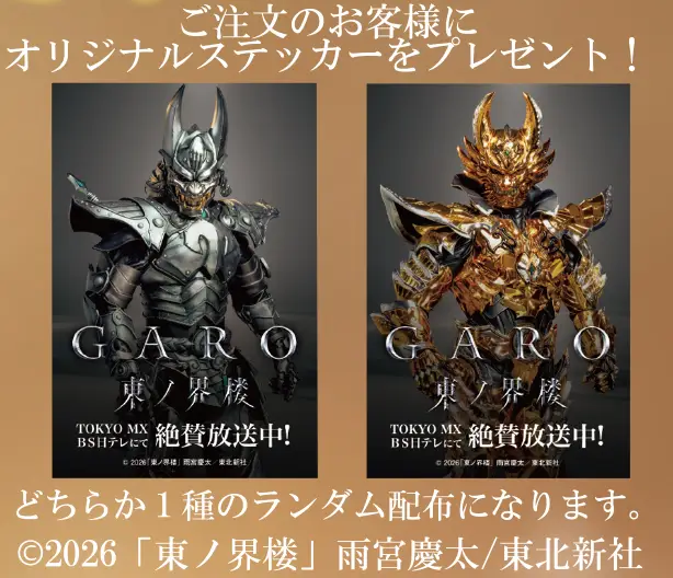 コラボメニューをご注文いただいたお客さまには『牙狼<GARO> 東ノ界楼』オリジナルステッカーを1枚プレゼントいたします。