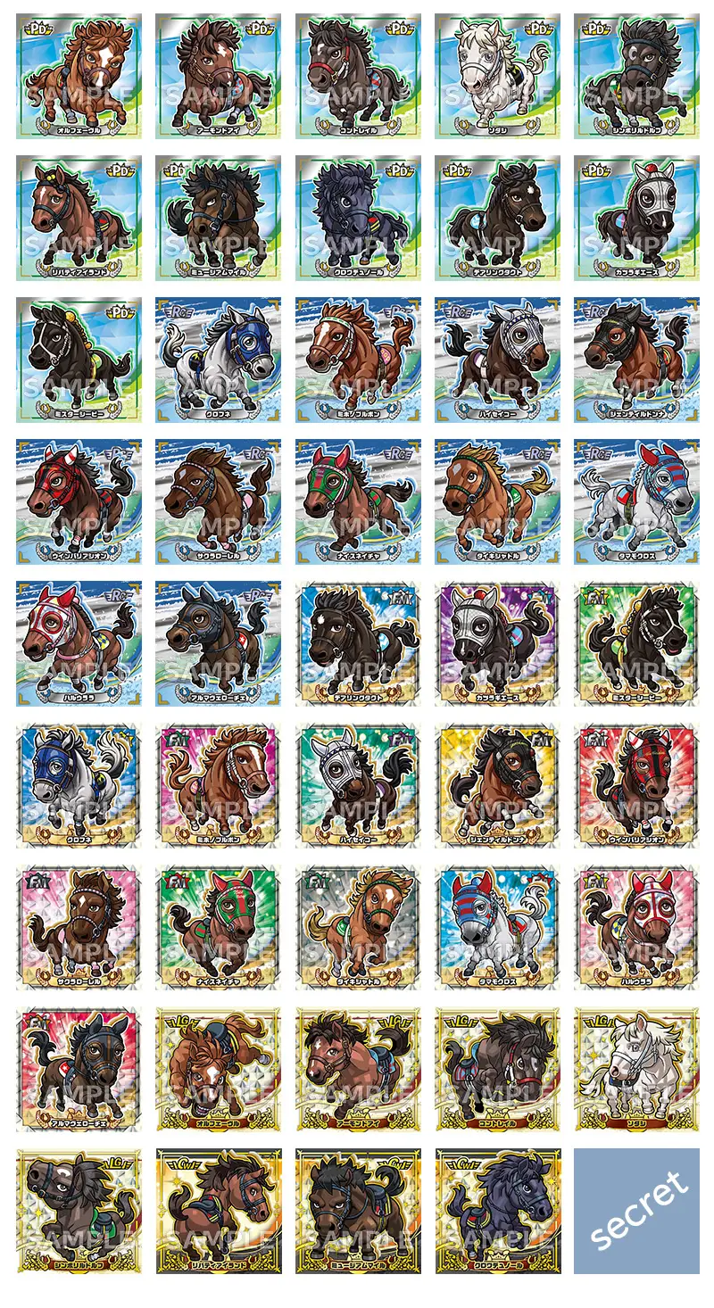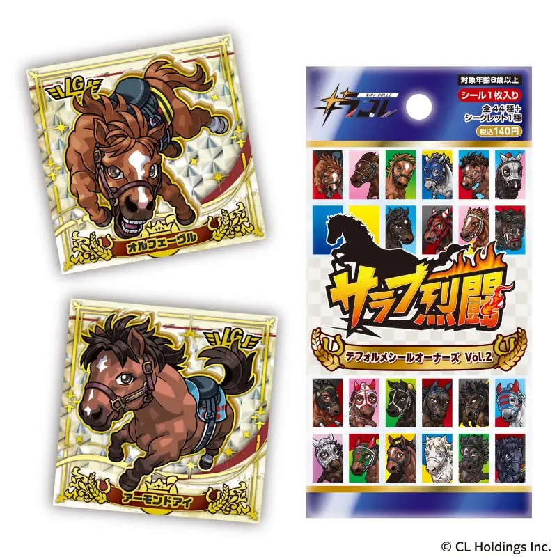 『サラブ烈闘デフォルメシールオーナーズVol.2』がローソン、ファミリーマート、ヤマシロヤ、ターフィーショップにて、2026年4月24日(金)より発売。全44種+シークレット1種の全45種。デフォルメデザインでシールサイズは52mm。