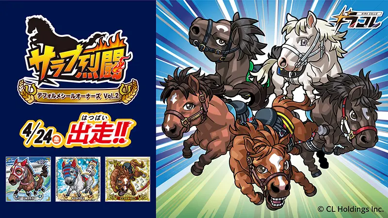 『サラブ烈闘デフォルメシールオーナーズVol.2』がローソン、ファミリーマート、ヤマシロヤ、ターフィーショップにて、2026年4月24日(金)より発売。全44種+シークレット1種の全45種。デフォルメデザインでシールサイズは52mm。
