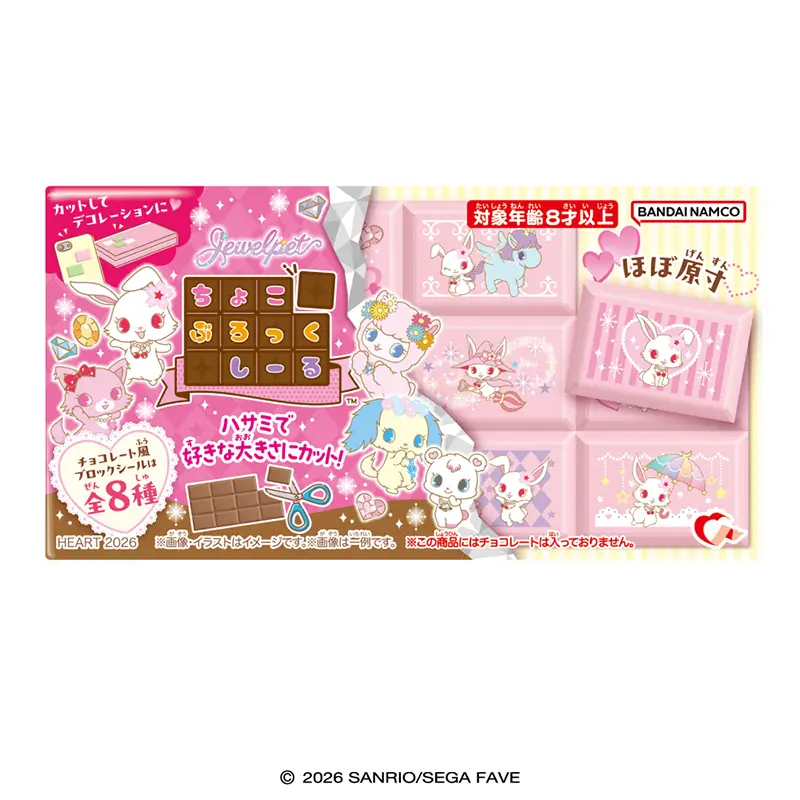 ラインナップは1シート12柄で全8種。ジュエルペットたちのマジカルなちょこぶろっくしーるをぜひ手に入れてね♪