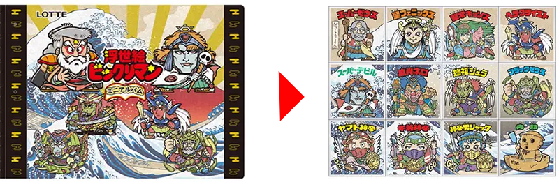 株式会社ロッテは、2026年4月21日(火)正午~4月23日(木)23:59:59の期間にて、「浮世絵ビックリマンチョコセット 特別シールホルダーおまけ付き」を抽選販売いたします。ロッテオンラインショップ限定・6,000セットの数量限定です。