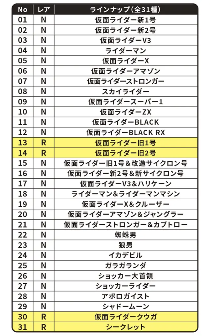 | ラインナップ | 全31種 |